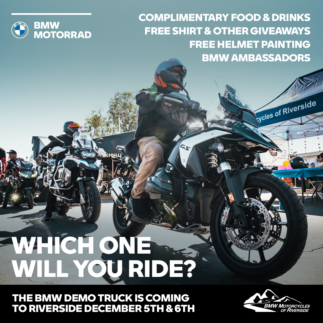 Save the dates Friday December 5th and Saturday December 6th for our annual BMW Motorrad Demo Fest! This year’s event is shaping up to be even bigger and better than ever!