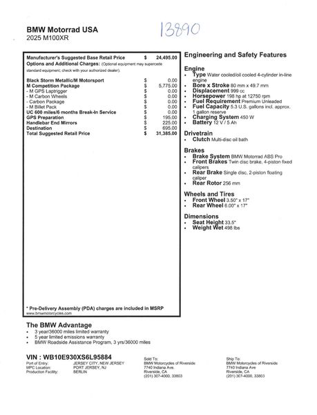 2025 M1000XR with M Competition Package and Carbon Fiber Wheels. M Billet Pack, Carbon Package, Dynamic Damping Control, Gear Shift Assist Pro, Heated Grips, TPM, Cruise Control and more. Financing available O.A.C.